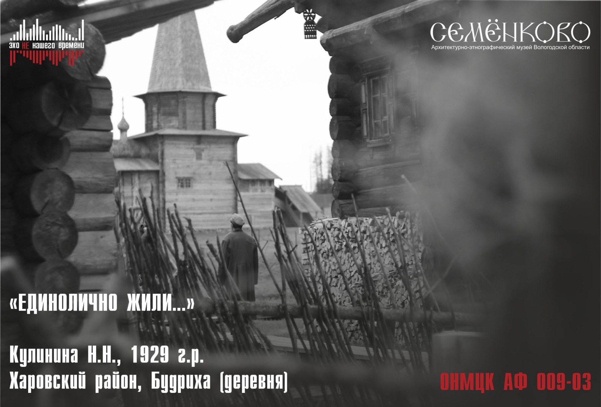 Проект «Эхо не нашего времени» стремится создать в музее под открытым небом среду, способствующую эмоциональному погружению и размышлениям о значимости традиционных ценностей и представлений для современного общества. Основу звукового ландшафта создадут оригиналы записей этнографических экспедиций, репортажи на различные темы, в том числе рассказы, былички, диалоги, фольклор, реконструкции записей Этнографического бюро князя Тенишева о вологодской деревне к. XIX – н. XX века; звуки природы и «живой деревни» с привязкой к конкретным локациям музея, оправданным с точки зрения тематики. Будут созданы условия, при которых человек самостоятельно исследует крестьянские представления об окружающем мире, крестьянском ладе, формирует собственный взгляд и отношение, участвует в обсуждении злободневных современных вопросов.